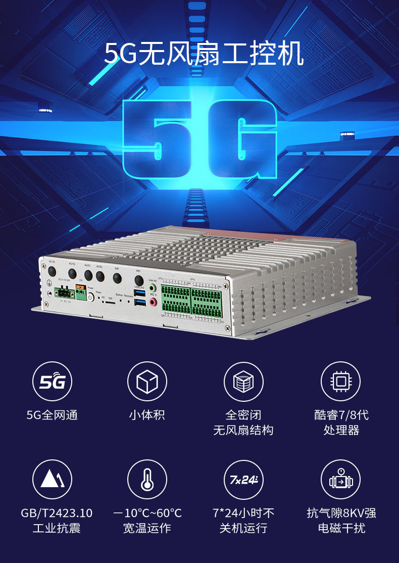 特控嵌入式工控機MEC-T8564,基于Intel平臺,采用高性能、低功耗的7/8代I3/I5/I7 U系列處理器,能很好的滿足AGV地面控制系統的反應要求;而且支持移動5G與WiFi并存,可以滿足AGV通訊無障礙鏈接;板載DDR4內存,支持SATA存儲,嚴格按照工業級標準打造,電磁兼容性良好,環境適應性強;無風扇設計,節能環保,滿足了存儲和長時間運行的需求。