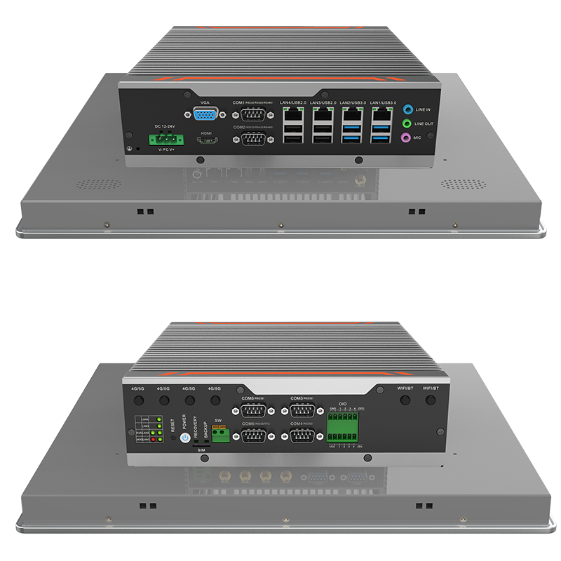 接口豐富: 4*LAN(Intel),6*COM,8*GPIO(4*GPI,4*GPO),4*USB3.0+4*USB2.0,1*VGA,1*HDMI,1*遠程開關,1*一鍵還原,1*一鍵備份,1*SIM槽,1*LINE IN,1*LINE OUT,1*MIC,1*2.5寸硬盤位,1*M.2(KEY-M,2280,SATA SDD),1*M.2(KEY-B,3042/3052,USB3.0信號 支持4G/5G模塊),1*MINI PCIE(全高,PCIE+USB2信號,支持WiFi/BT)